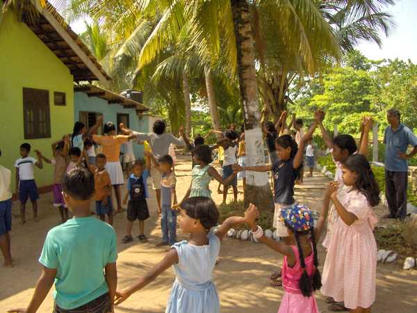 First we went to a Children's Activity Centre at Wenemulla, the village we had been building in. We saw many of our friends from the village as we watched some dancing, a play and games put on by the children. Immediately post-tsunami, the Siyath Foundation provided children who could not go to school with somewhere safe to go, education and one meal a day. The emphasis is on practical skills - 'way of life' teaching, rather than rote learning which is the standard in schools. Now, the centre caters for pre-school children during the day and provides out of school care for the children of homeworkers - like the women in the house next to our build who spin coir in the afternoons. Getting children to express their feelings about the tsunami through various forms of art (painting, songs, drama) has proved an effective form of counselling, along with encouraging children to play with water again.